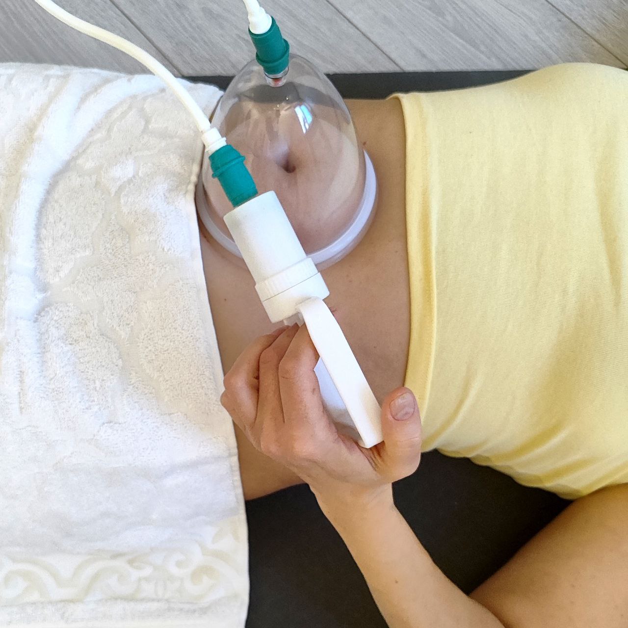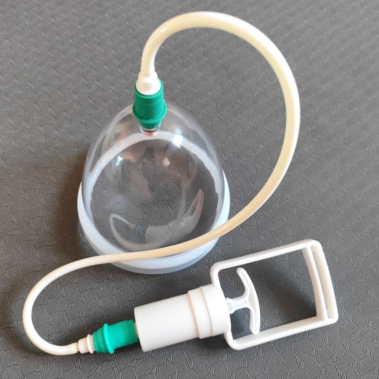 Вакуумная банка на живот с насосом и трубочкой.