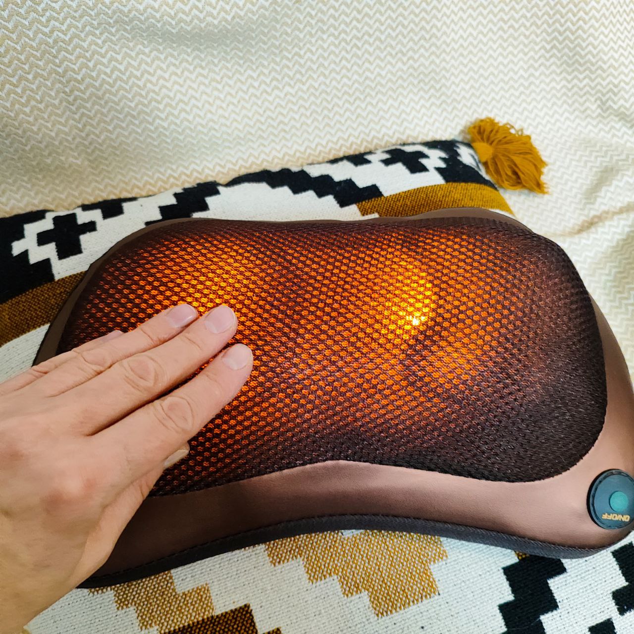 Массажная подушка с четырьмя массажными роликами и инфракрасным прогревом.