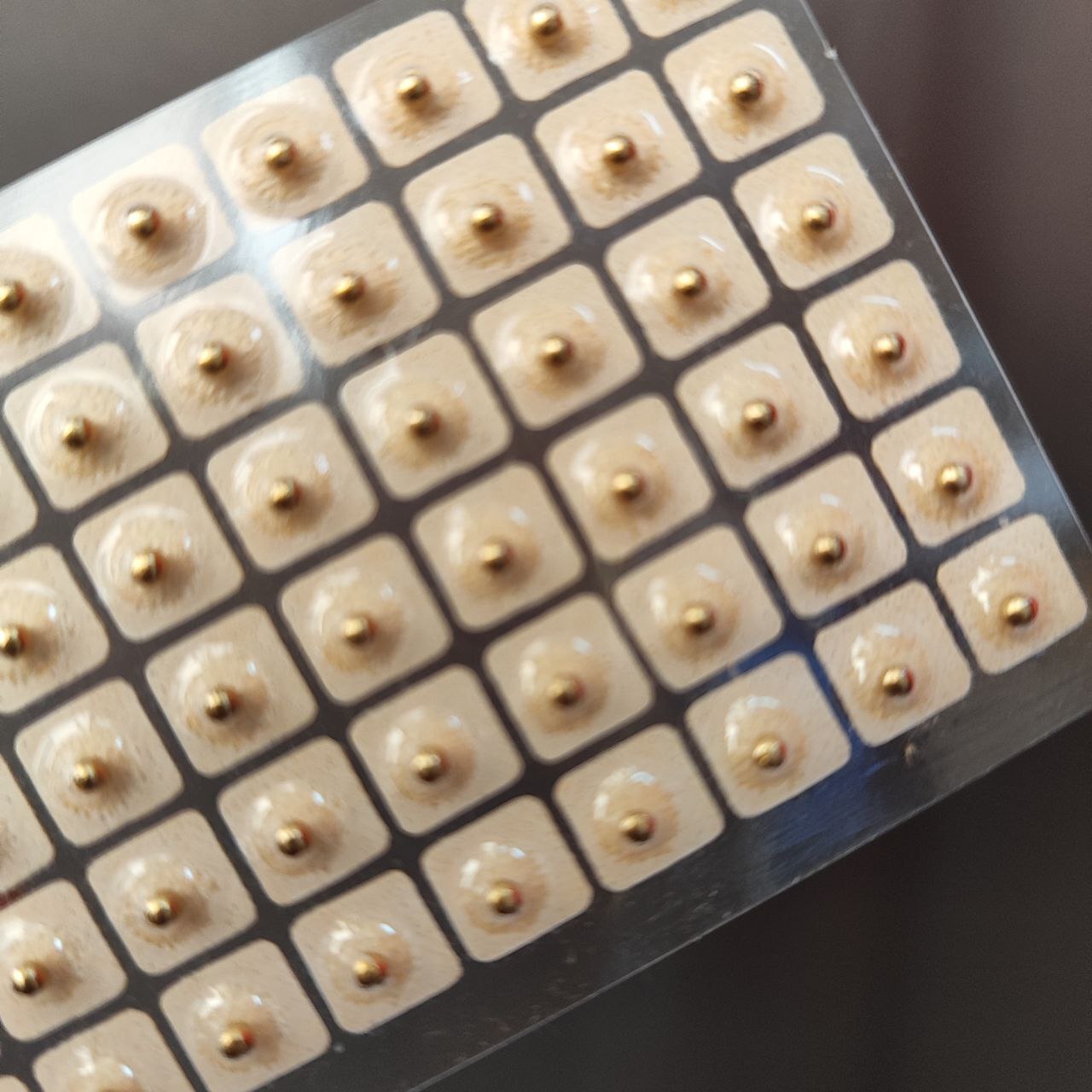 Шарики для цубо магнитные, золотого цвета, на подложке под пластырем 60 штук. Магнитная индукция 800 Гаусов. Применяется для постановки на мини системы (ушные раковины, пальцы, кисти). Цена указана за 60 шариков. Купить шарики цубо приглашаем в наш магазин в Челябинске или оформите доставку в ваш город.